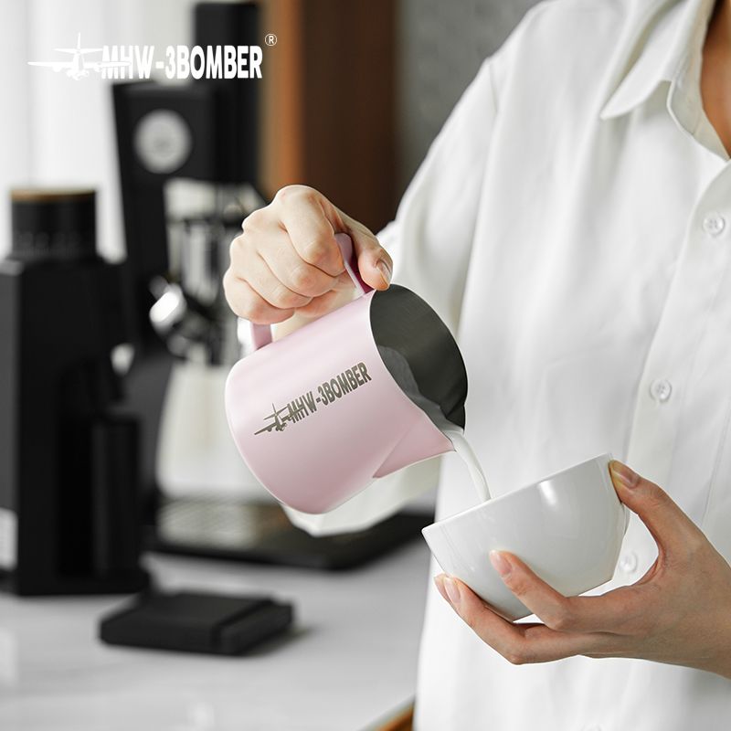 ćErgonomic HandlećThe handle of the coffee steam pitcher has been smoothly polished, with appropriate thickness and width, which is suitable for various cylinder holding methods such as pen holding, horizontal holding, etc. It makes you comfortable and reduces fatigue during use.