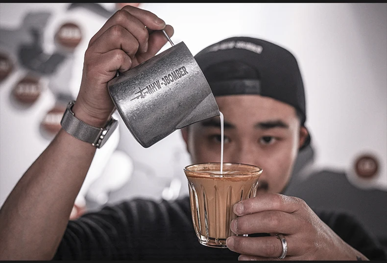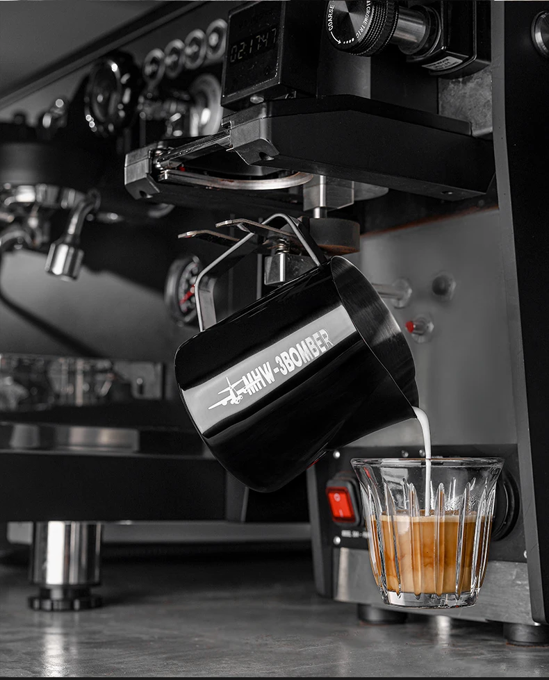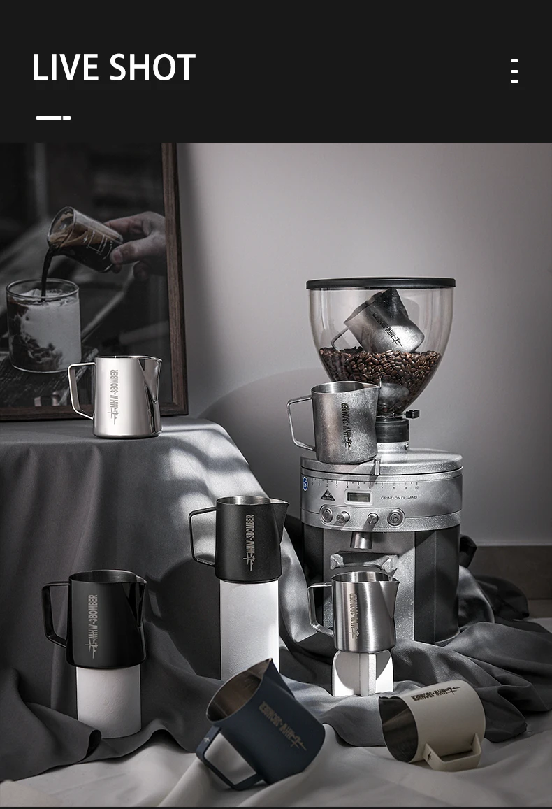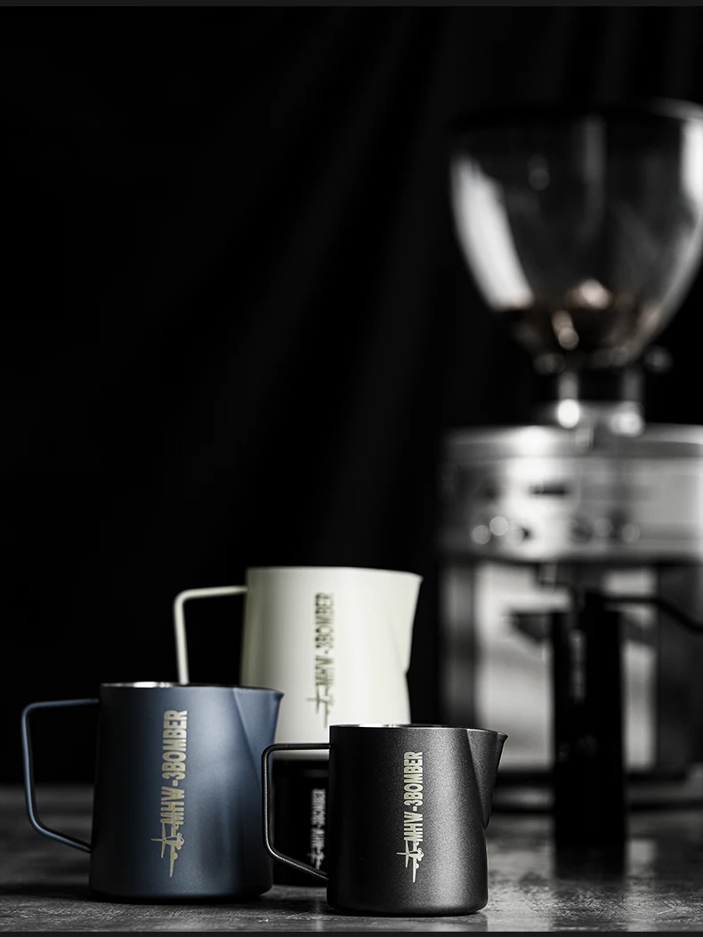 ćErgonomic HandlećThe handle of the coffee steam pitcher has been smoothly polished, with appropriate thickness and width, which is suitable for various cylinder holding methods such as pen holding, horizontal holding, etc. It makes you comfortable and reduces fatigue during use.