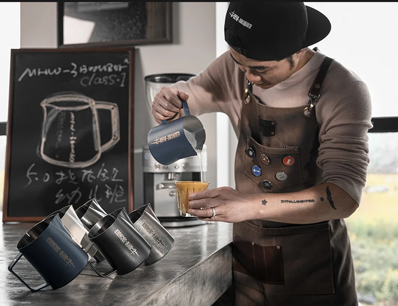 Unique Design Concept: This milk pitcher features a patented crocodile cylinder mouth design with double-curved guidance grooves, making latte art and milk frothing simpler and more precise.
