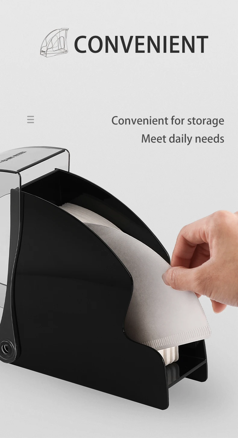 MHW 3BOMBER Coffee Filter Paper Storage Box Coffee Filter Holder with Dustproof Cover for Cone Coffee Filters Barista Tools