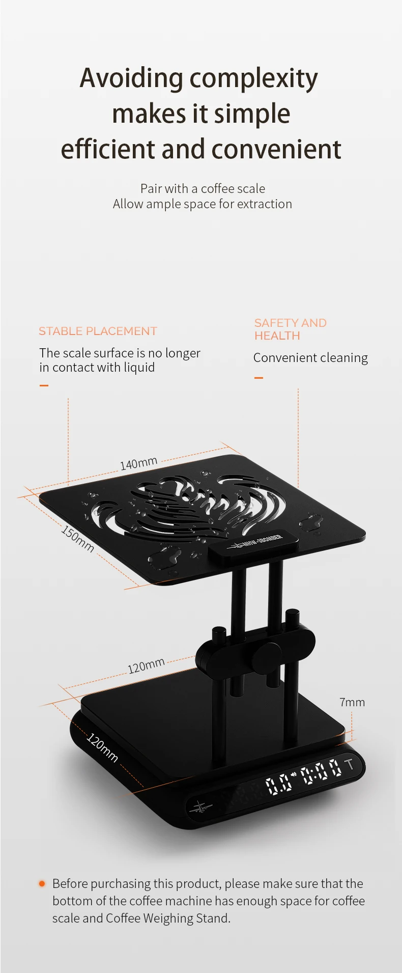 *High Quality Material: Aluminium Alloy Electronic Scale Rack,high durability, rust-proof, corrosion resistance and heat-resistance, these coffee machine weighing stands have a longer lifespan than other plastic or silicone ones.