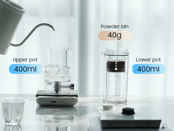 High-Quality Materials: The cold brew drip coffee maker is made from PCTG and SUS304, providing food-safe, durable, and easy-to-clean components, with high transparency for monitoring contents.