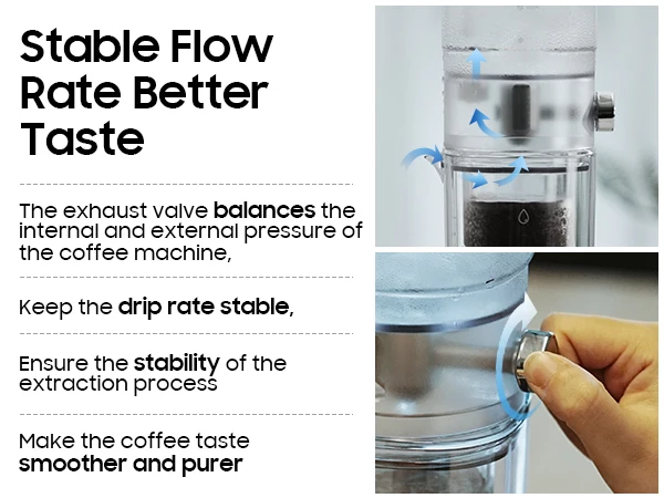 Constant Pressure Dripping: The Cold Drip Coffee Maker features a one-way exhaust valve that maintains consistent pressure and a stable drip rate, ensuring even and high-quality extraction.
