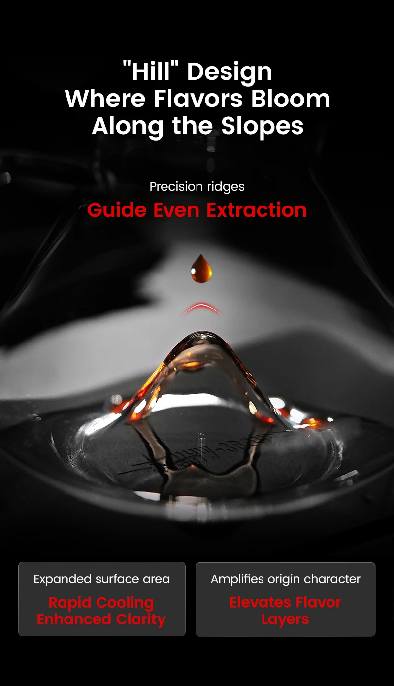 • Functionality: The unique shape of the inner wall accelerates liquid-air contact, evenly releasing the coffee's regional flavors while promoting cooling, preventing over-extraction, and enhancing the balance of acidity, sweetness, and aromatic layers.