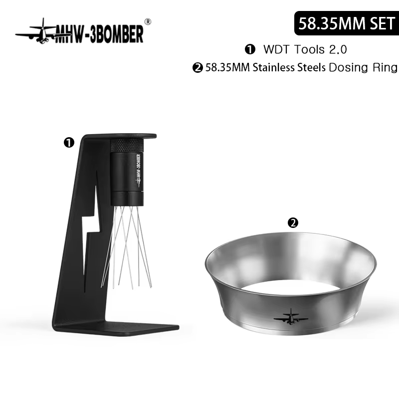 MHW-3BOMBER WDT Tool Espresso Distribution Tool with Magnetic Stand,Adjustable Range Coffee Needle Stirrer Dosing Funnel Set