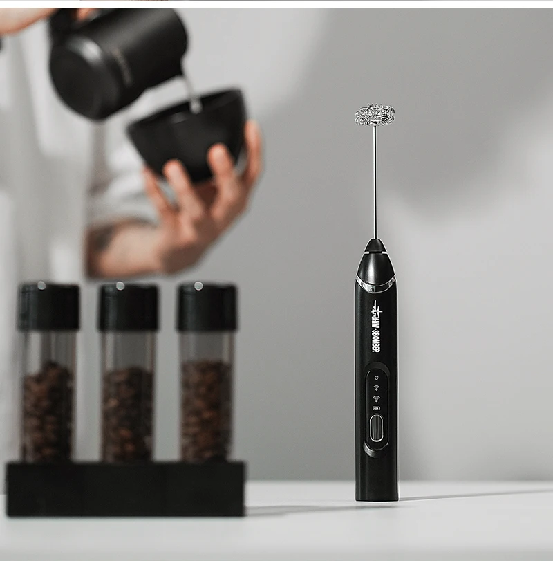 MHW-3BOMEBR Rechargeable Milk Frother Handheld Electric Foam Maker Stainless Steel Whisk Drink Mixer Foamer for Latte/Cappuccino