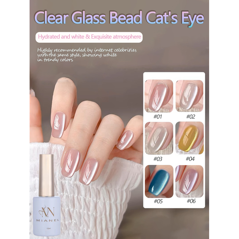 MIANEL 12ML Glass Bead Cat Eye Gel Nail Polish Flash White Spar Nude Color Magnetic Nail Polish White Nails Summer Nails 1-12pcs