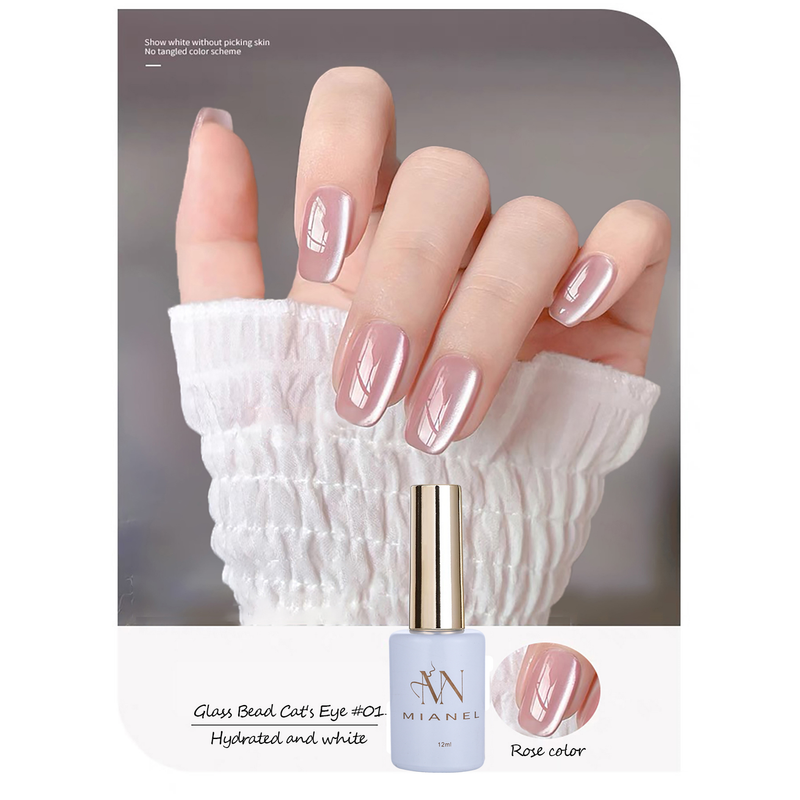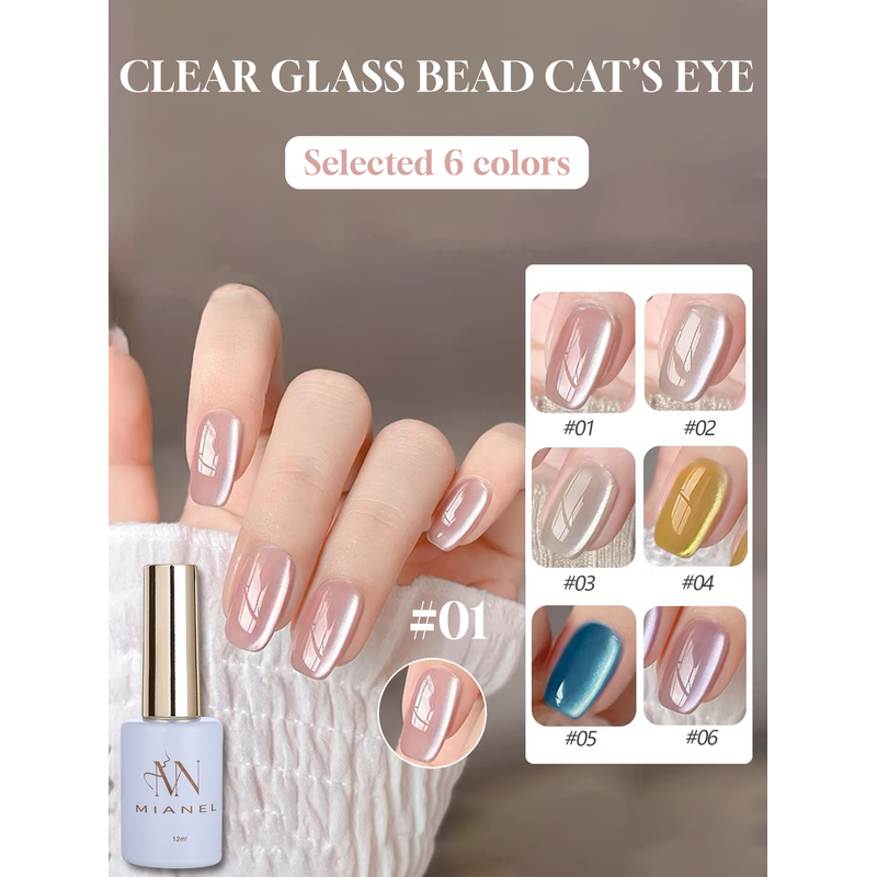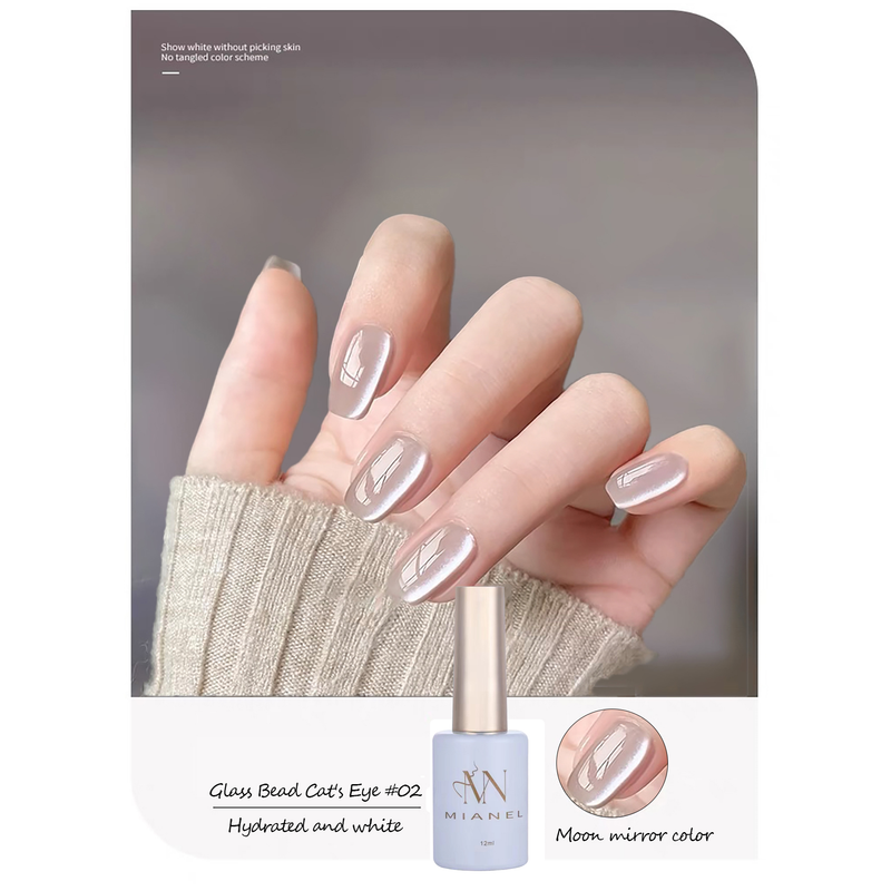 MIANEL 12ML Glass Bead Cat Eye Gel Nail Polish Flash White Spar Nude Color Magnetic Nail Polish White Nails Summer Nails 1-12pcs