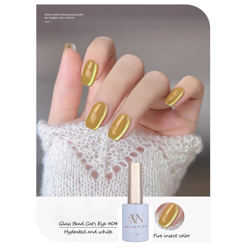 MIANEL 12ML Glass Bead Cat Eye Gel Nail Polish Flash White Spar Nude Color Magnetic Nail Polish White Nails Summer Nails 1-12pcs
