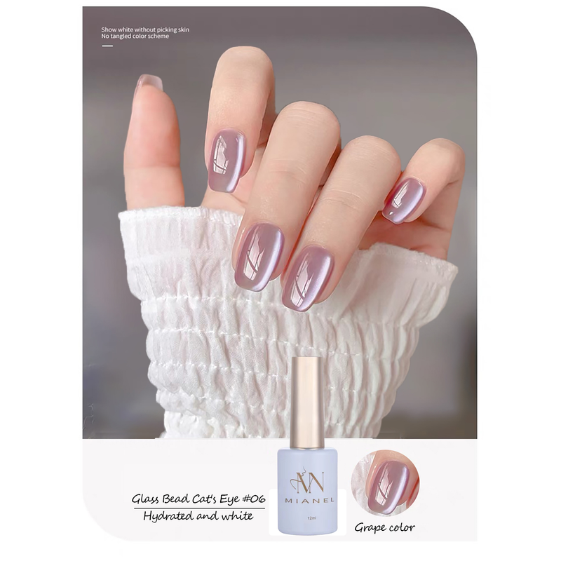 MIANEL 12ML Glass Bead Cat Eye Gel Nail Polish Flash White Spar Nude Color Magnetic Nail Polish White Nails Summer Nails 1-12pcs