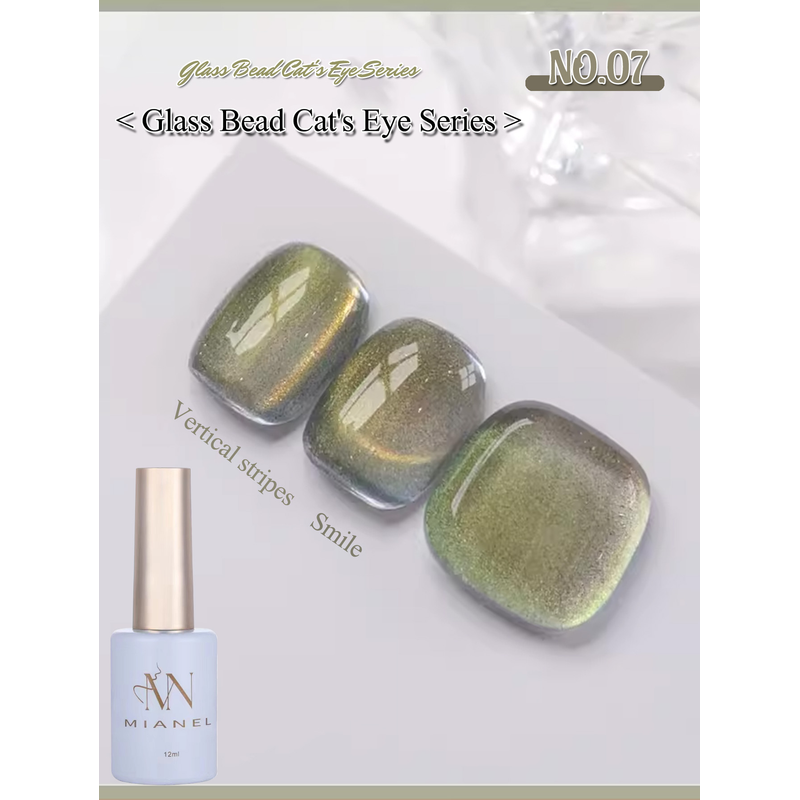 MIANEL 12ML Glass Bead Cat Eye Gel Nail Polish Flash White Spar Nude Color Magnetic Nail Polish White Nails Summer Nails 1-12pcs