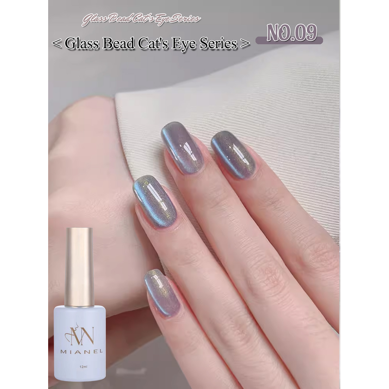 MIANEL 12ML Glass Bead Cat Eye Gel Nail Polish Flash White Spar Nude Color Magnetic Nail Polish White Nails Summer Nails 1-12pcs