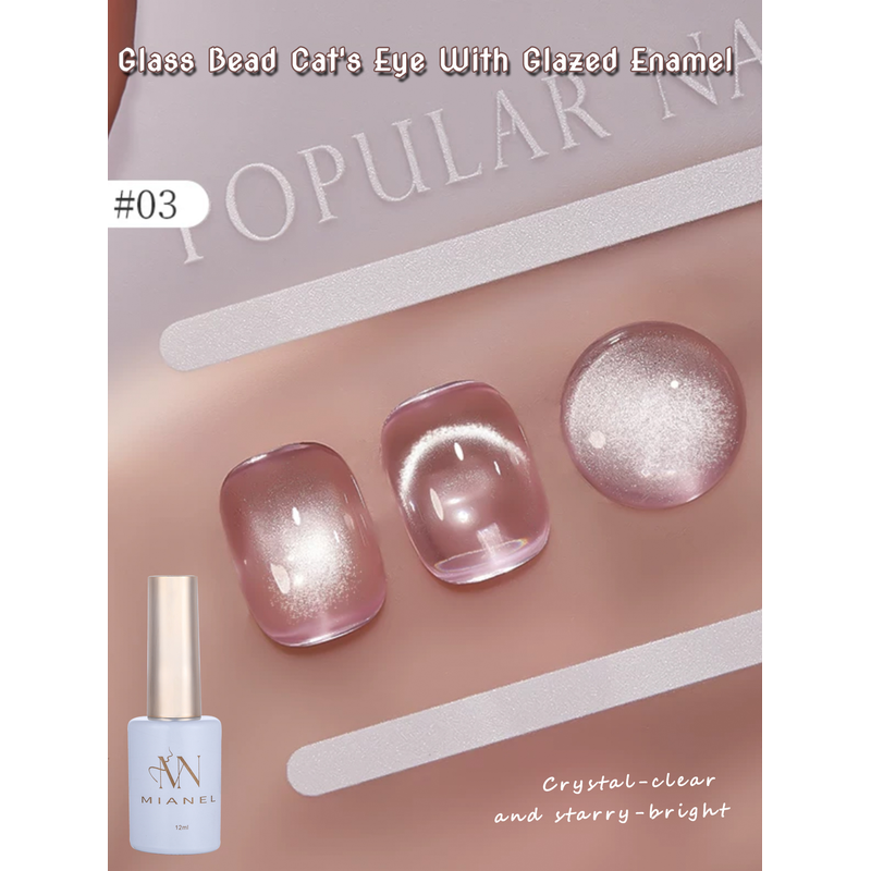 MIANEL 12ML Glass Bead Cat Eye Gel Nail Polish Flash White Spar Nude Color Magnetic Nail Polish White Nails Summer Nails 1-12pcs