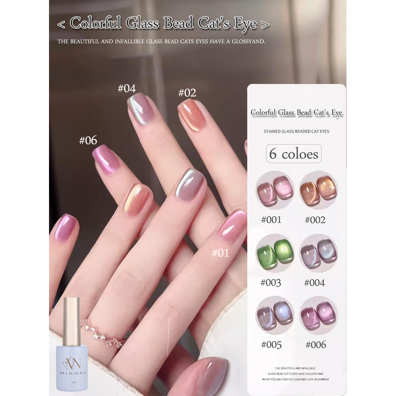 MIANEL 12ML Glass Bead Cat Eye Gel Nail Polish Flash White Spar Nude Color Magnetic Nail Polish White Nails Summer Nails 1-12pcs