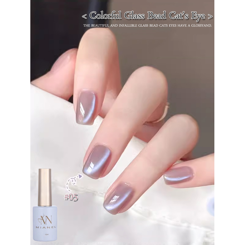 MIANEL 12ML Glass Bead Cat Eye Gel Nail Polish Flash White Spar Nude Color Magnetic Nail Polish White Nails Summer Nails 1-12pcs