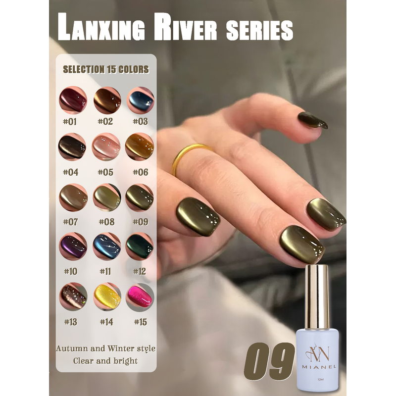MIANEL 12ML Hibiscus Purple Cat Eye Gel Nail Polish Super Whitening Glass Beads Cat Eye Nails Purple Nials Blue Nails 1-12PCS