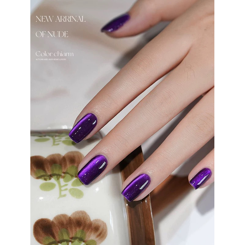 MIANEL 12ML Hibiscus Purple Cat Eye Gel Nail Polish Super Whitening Glass Beads Cat Eye Nails Purple Nials Blue Nails 1-12PCS