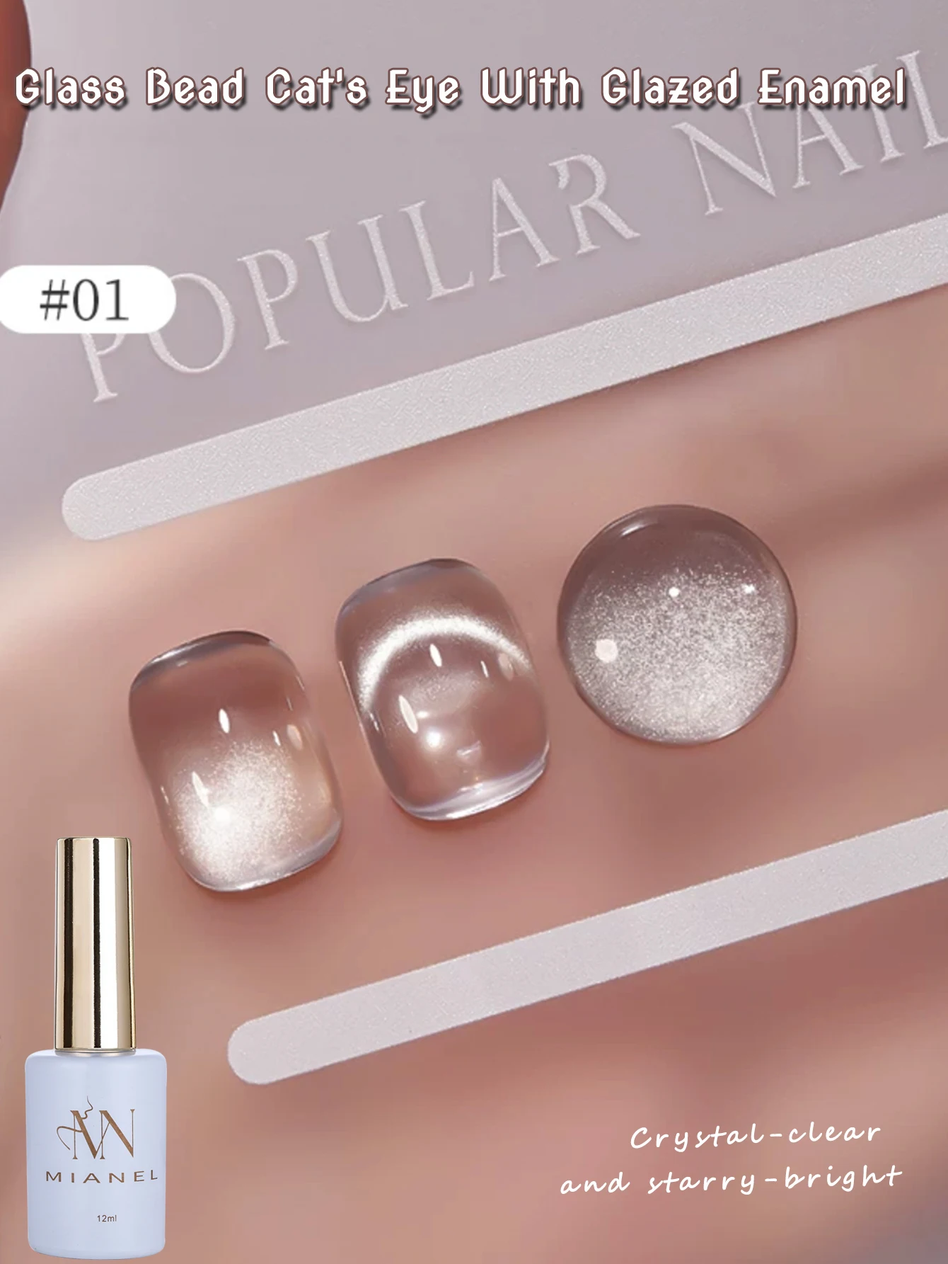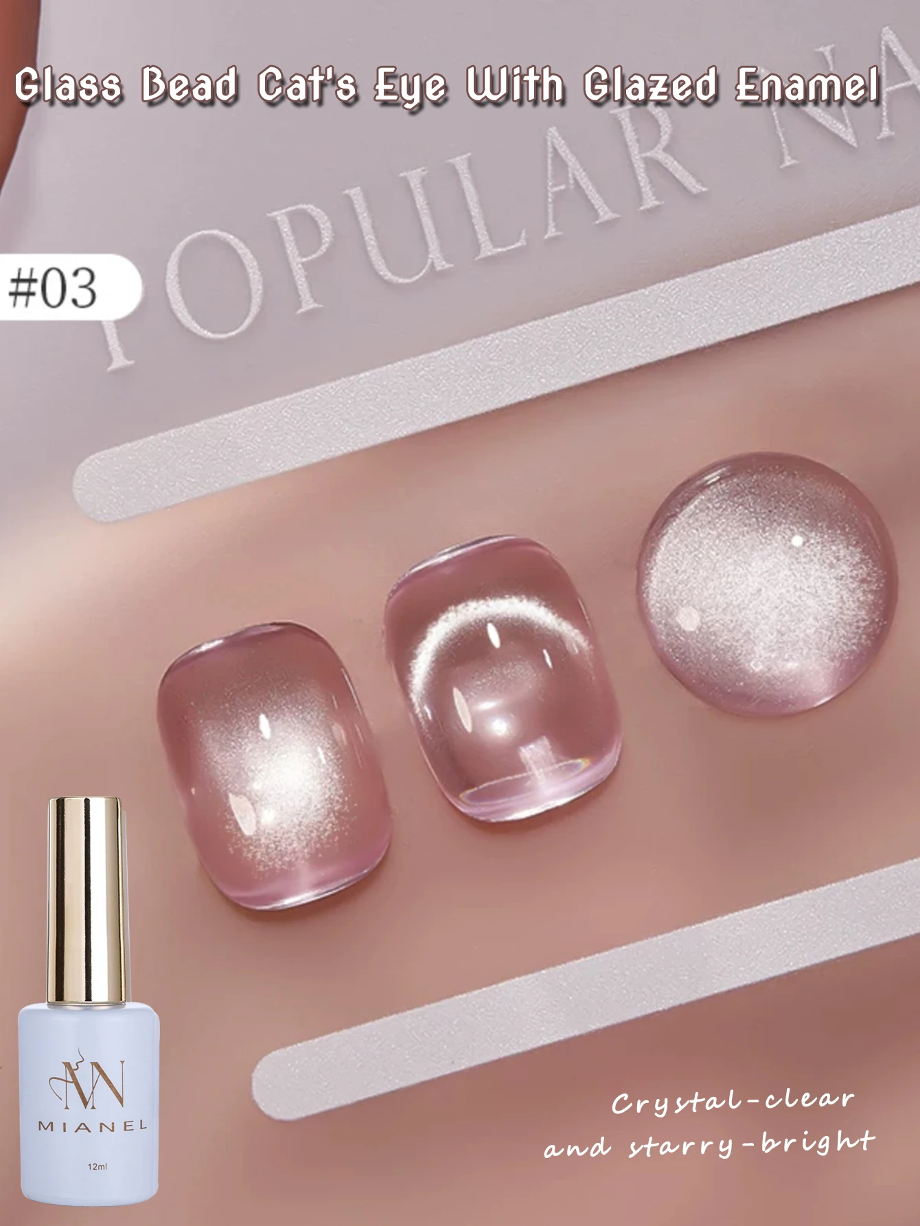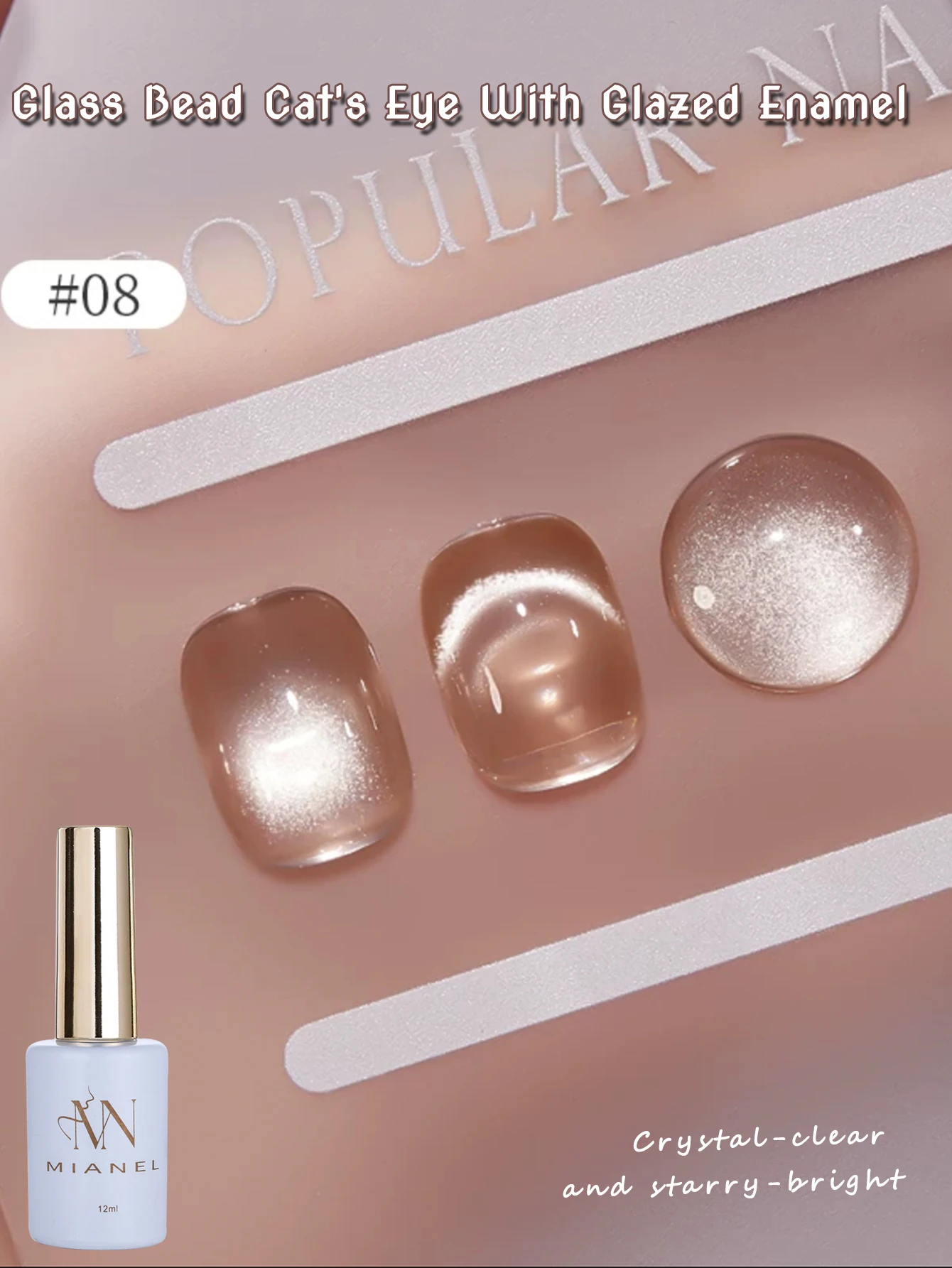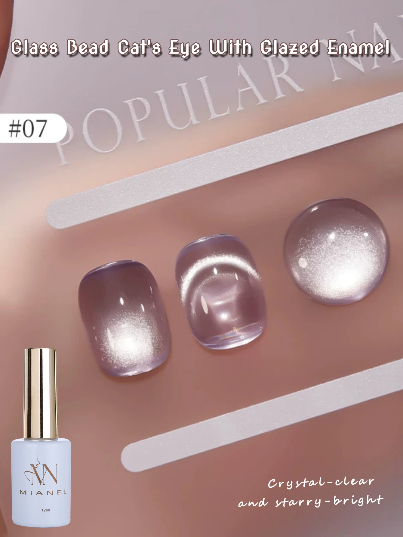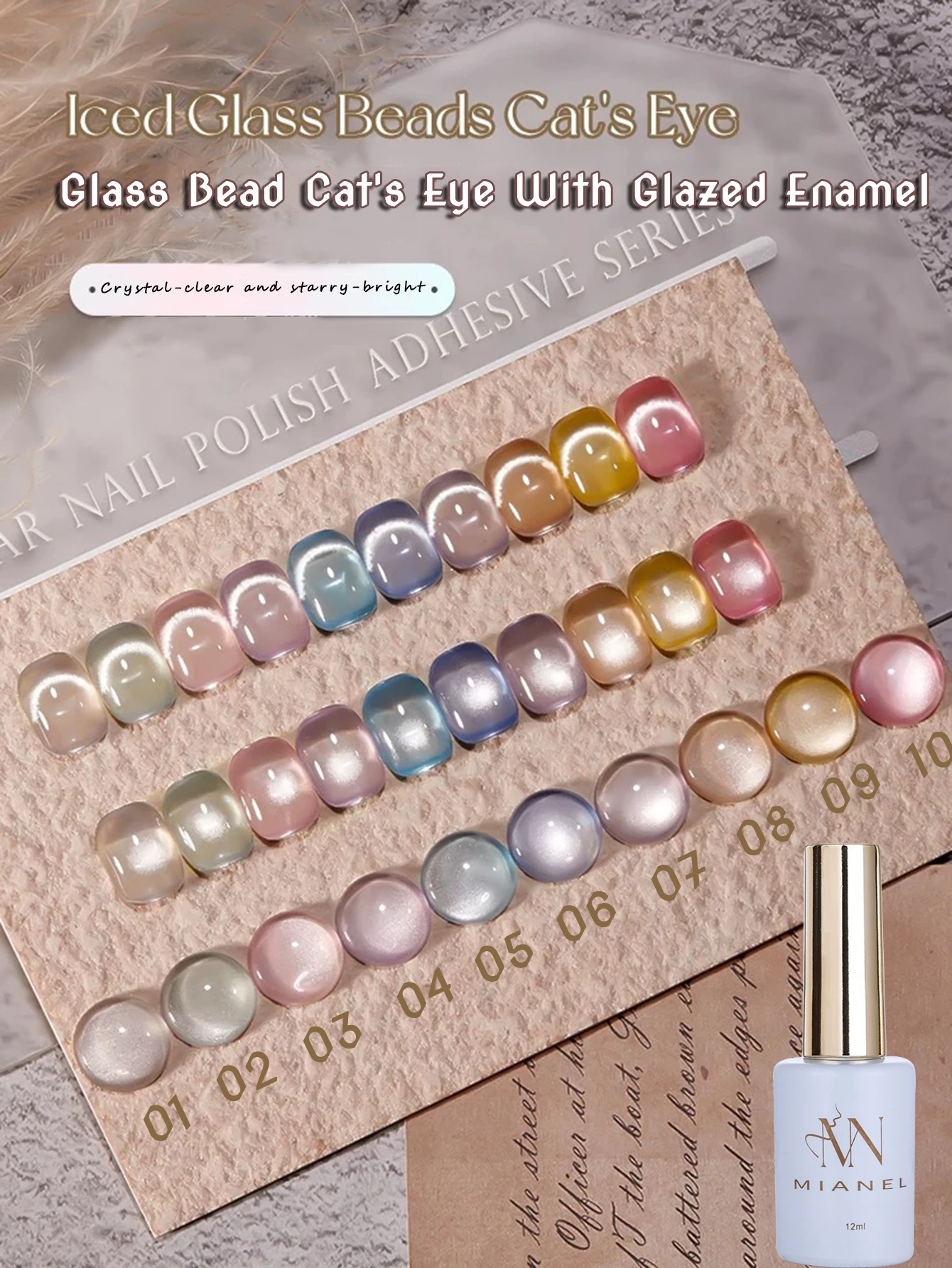 MIANEL 12ML Hot-selling Streamer White Cat Eye Gel Nail Polish White Glass Beads Gel White Nails Nail Art Summer Nails 1-21pcs