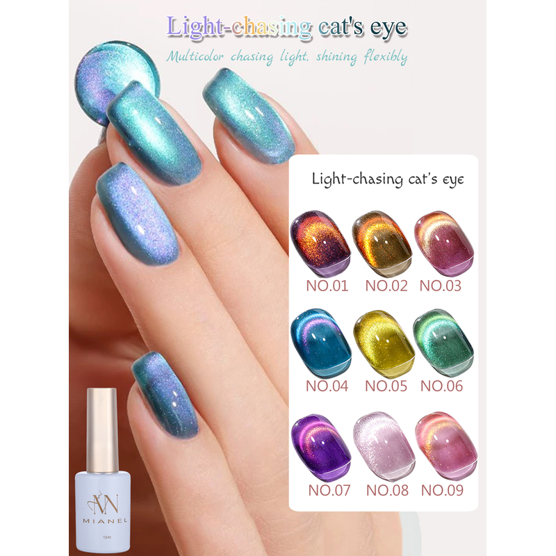 MIANEL 12ML Hot-selling Streamer White Cat Eye Gel Nail Polish White Glass Beads Gel White Nails Nail Art Summer Nails 1-21pcs