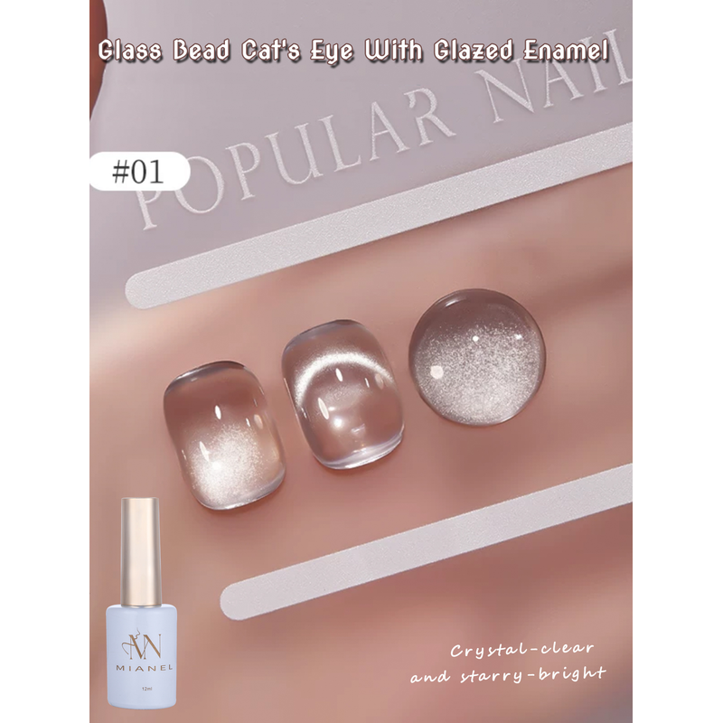 MIANEL 12ML Hot-selling Streamer White Cat Eye Gel Nail Polish White Glass Beads Gel White Nails Nail Art Summer Nails 1-21pcs
