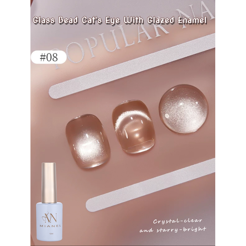 MIANEL 12ML Hot-selling Streamer White Cat Eye Gel Nail Polish White Glass Beads Gel White Nails Nail Art Summer Nails 1-21pcs