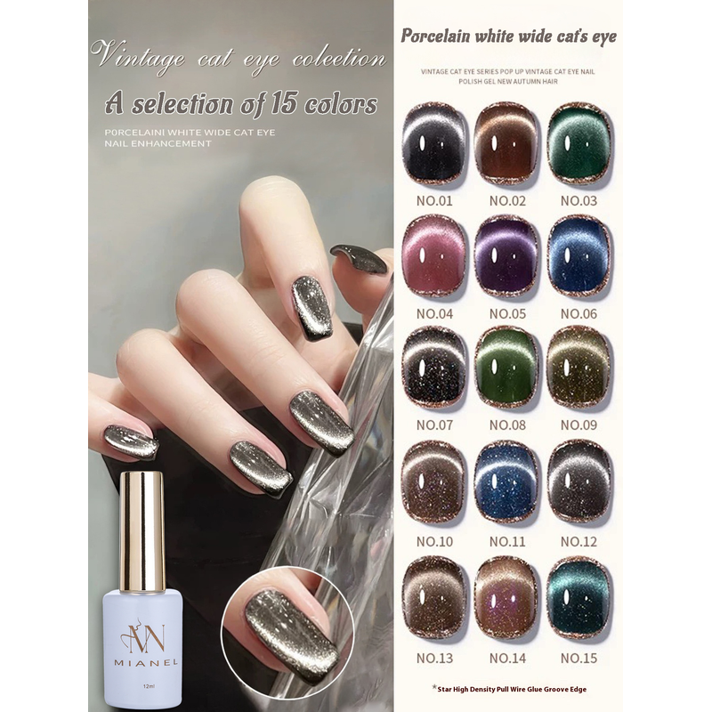 MIANEL 12ML Hot-selling Streamer White Cat Eye Gel Nail Polish White Glass Beads Gel White Nails Nail Art Summer Nails 1-21pcs