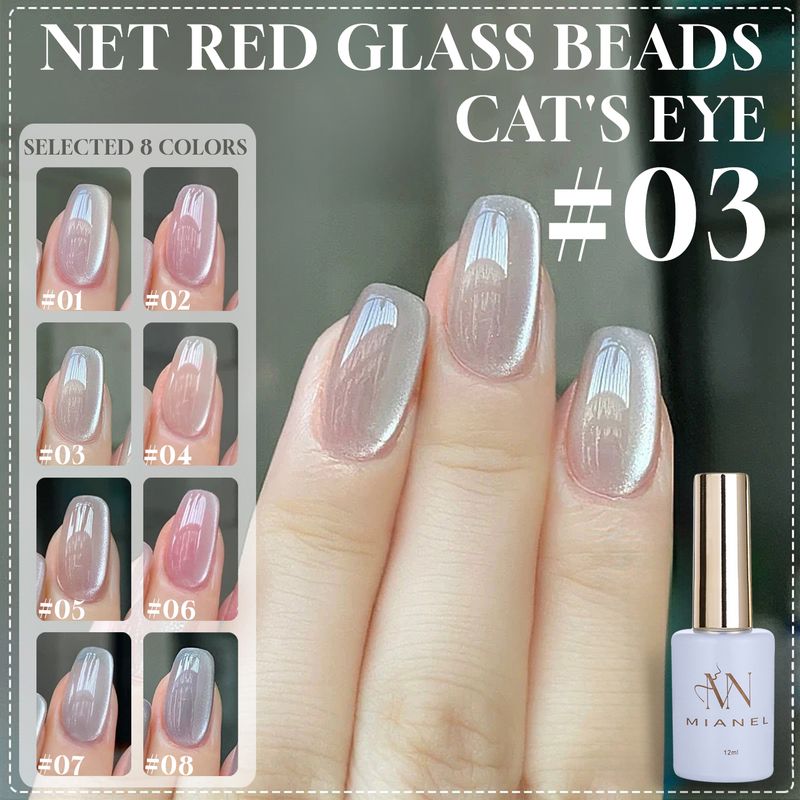 MIANEL 12ML Hot-selling Streamer White Cat Eye Gel Nail Polish White Glass Beads Gel White Nails Nail Art Summer Nails 1-21pcs