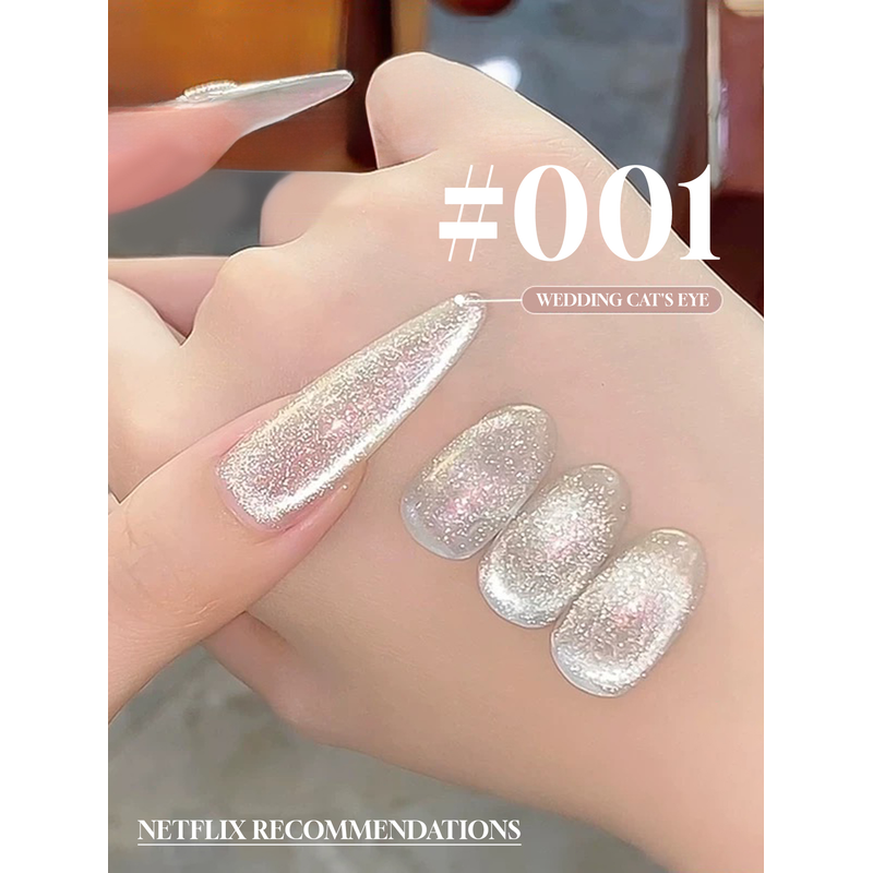 MIANEL 12ML Hot-selling Streamer White Cat Eye Gel Nail Polish White Glass Beads Gel White Nails Nail Art Summer Nails 1-21pcs