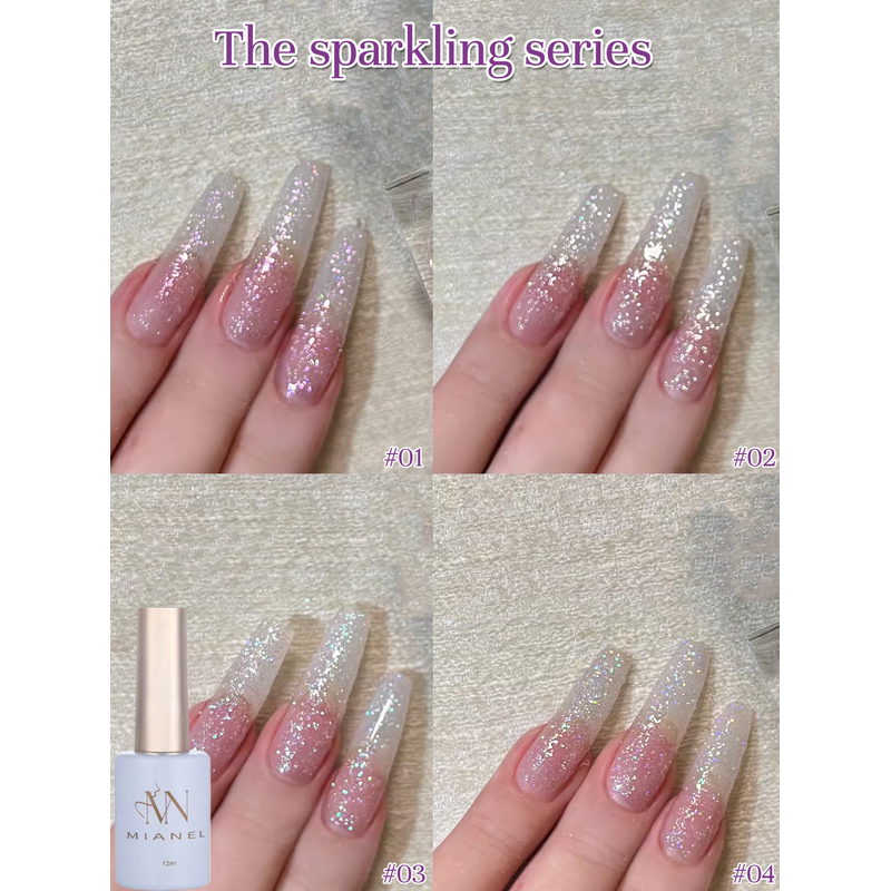 MIANEL 12ML Milk White Glitter Gel Nail Polish High Gloss Light Bulb Fine Glitter Powder Nail Polish 2026 White Nails 1-12PCS