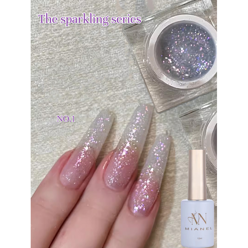 MIANEL 12ML Milk White Glitter Gel Nail Polish High Gloss Light Bulb Fine Glitter Powder Nail Polish 2026 White Nails 1-12PCS