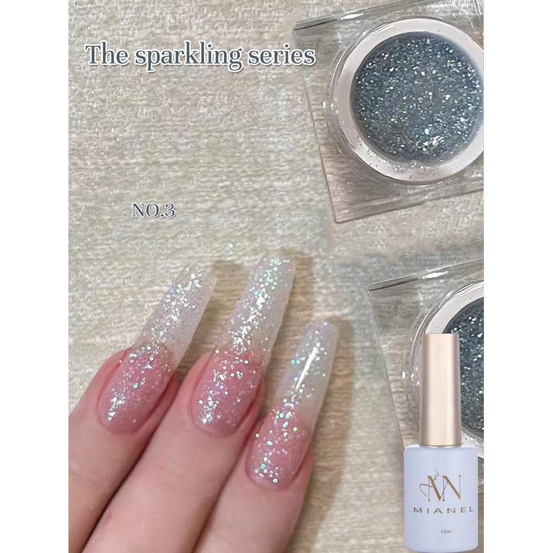 MIANEL 12ML Milk White Glitter Gel Nail Polish High Gloss Light Bulb Fine Glitter Powder Nail Polish 2026 White Nails 1-12PCS