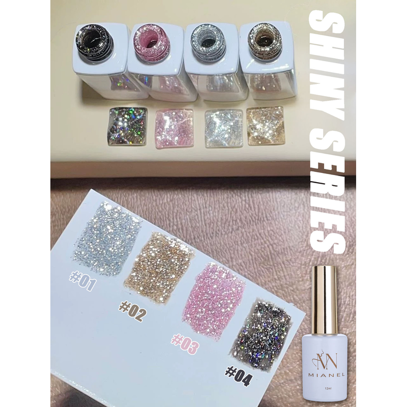 MIANEL 12ML Milk White Glitter Gel Nail Polish High Gloss Light Bulb Fine Glitter Powder Nail Polish 2026 White Nails 1-12PCS