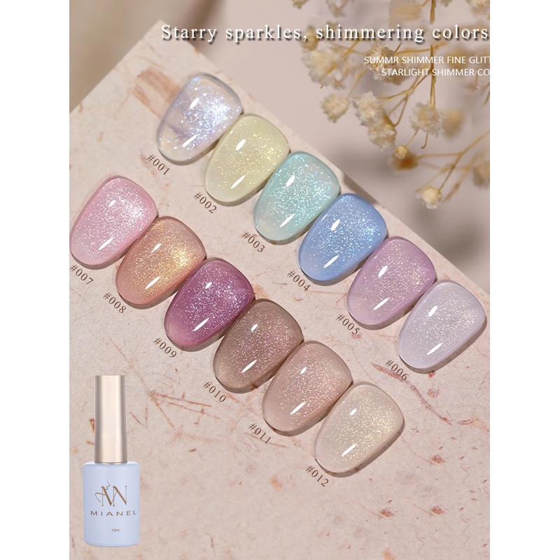 MIANEL 12ML Milk White Glitter Gel Nail Polish High Gloss Light Bulb Fine Glitter Powder Nail Polish 2026 White Nails 1-12PCS