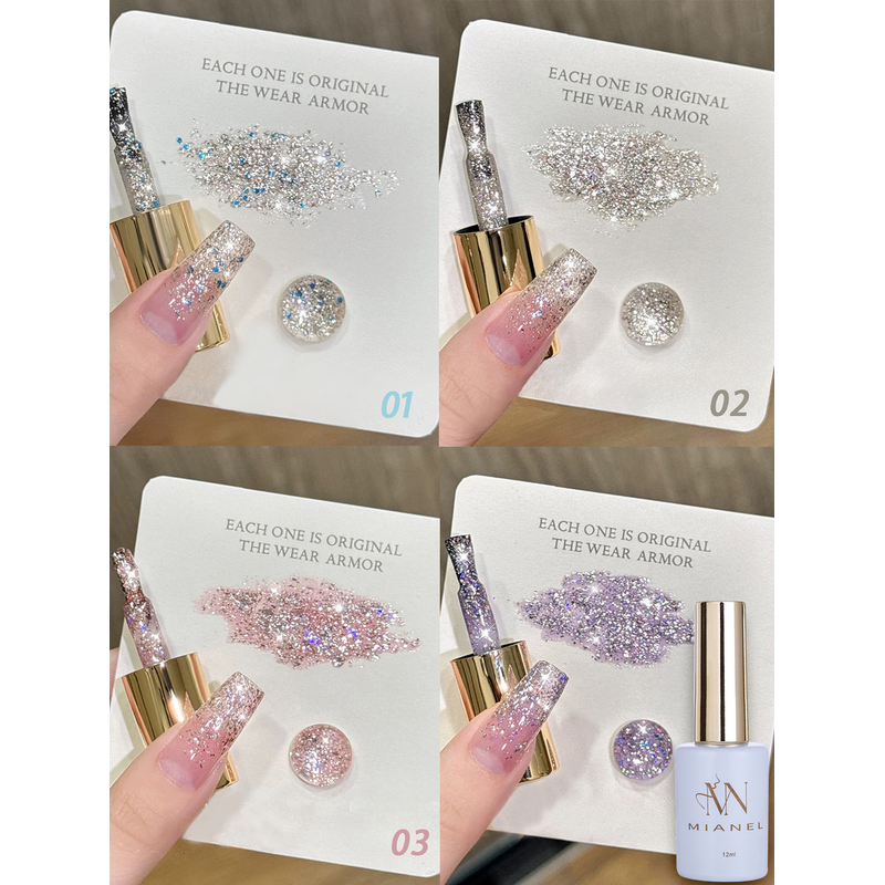 MIANEL 12ML Milk White Glitter Gel Nail Polish High Gloss Light Bulb Fine Glitter Powder Nail Polish 2026 White Nails 1-12PCS