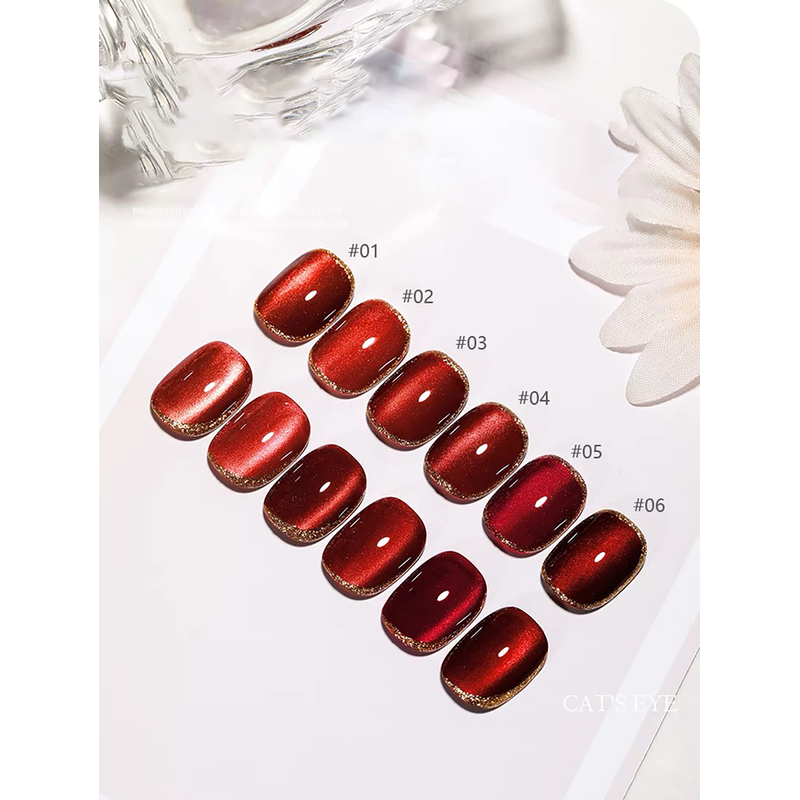 MIANEL 12ML Red Ocean Cat Eye Gel Nail Polish 2026 Top Selling Red Color Flash Glass Beads Cat Magnetic Gel Red Nails 1-9pcs