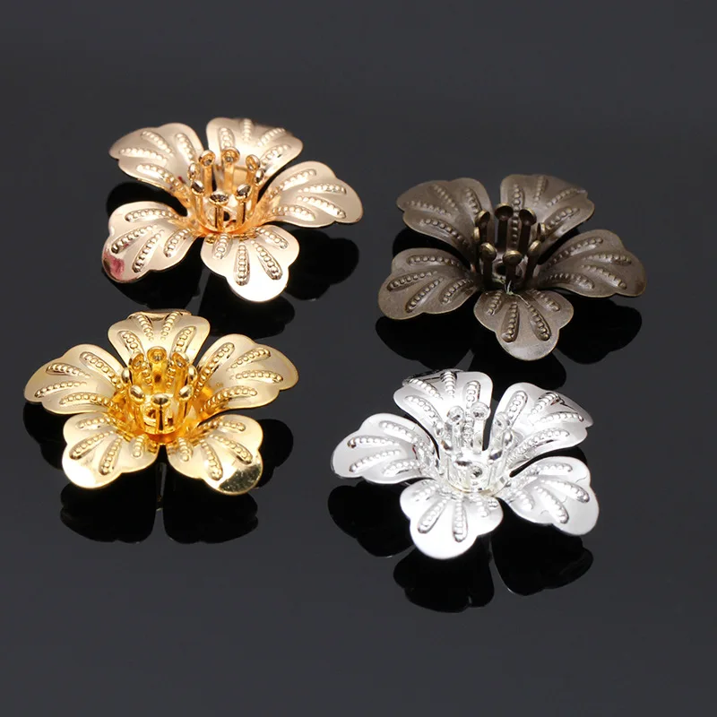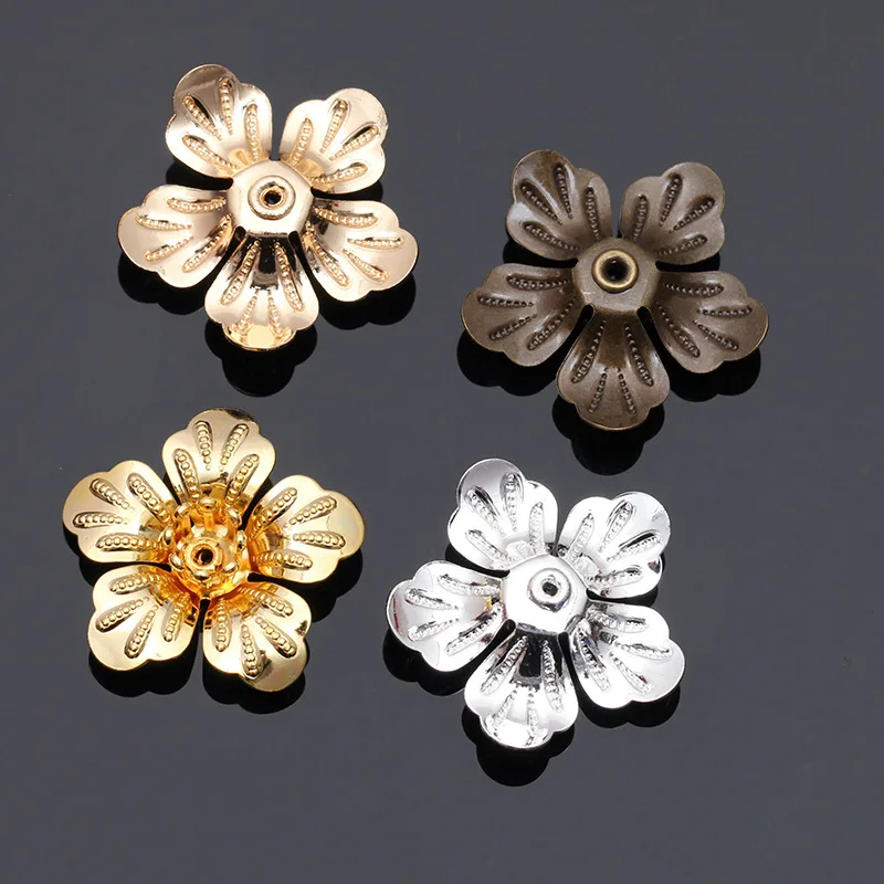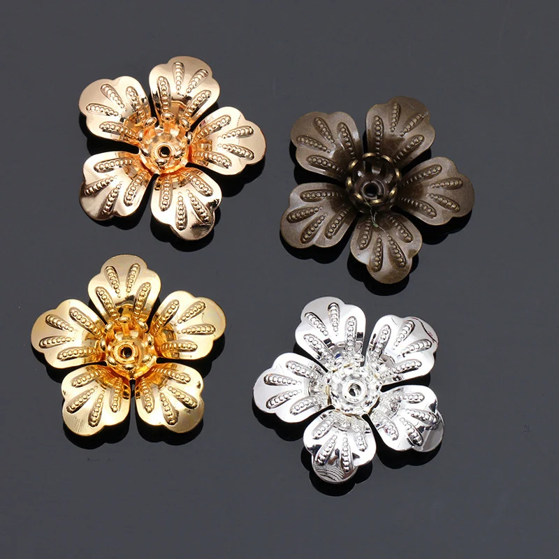 Mibrow 20pcs/lot  4 Colors 20mm Copper Flower Bead Caps Vintage Flower Filigree Loose Spacer Bead End Caps For  Jewelry Making