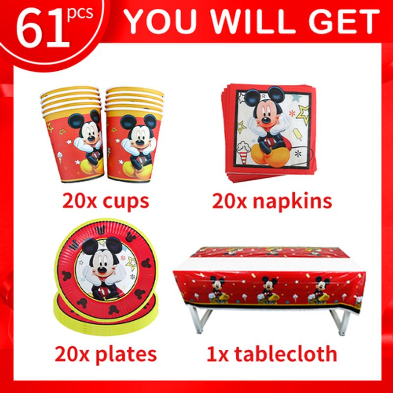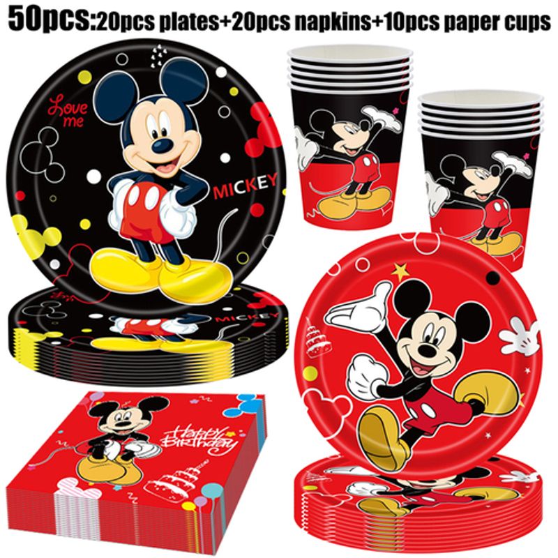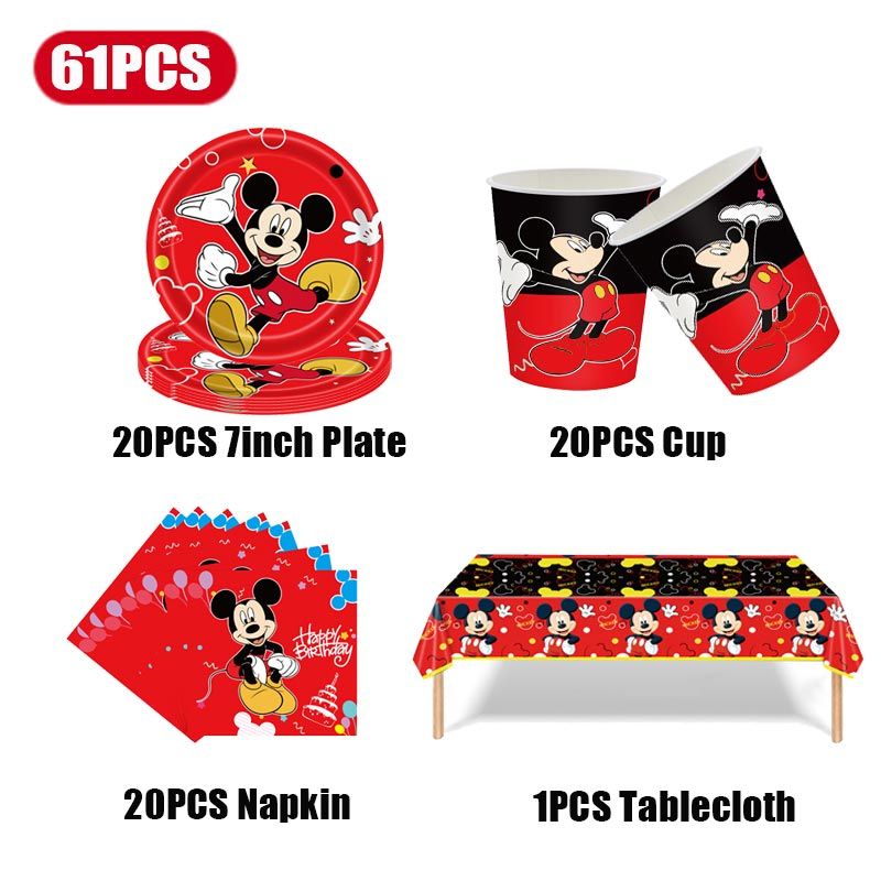 Mickey Birthday Decoration Tableware Plate Cup Napkin Tablecloth Mickey Mouse Balloon Backdrop Banner Pennant Kid Party Supplies