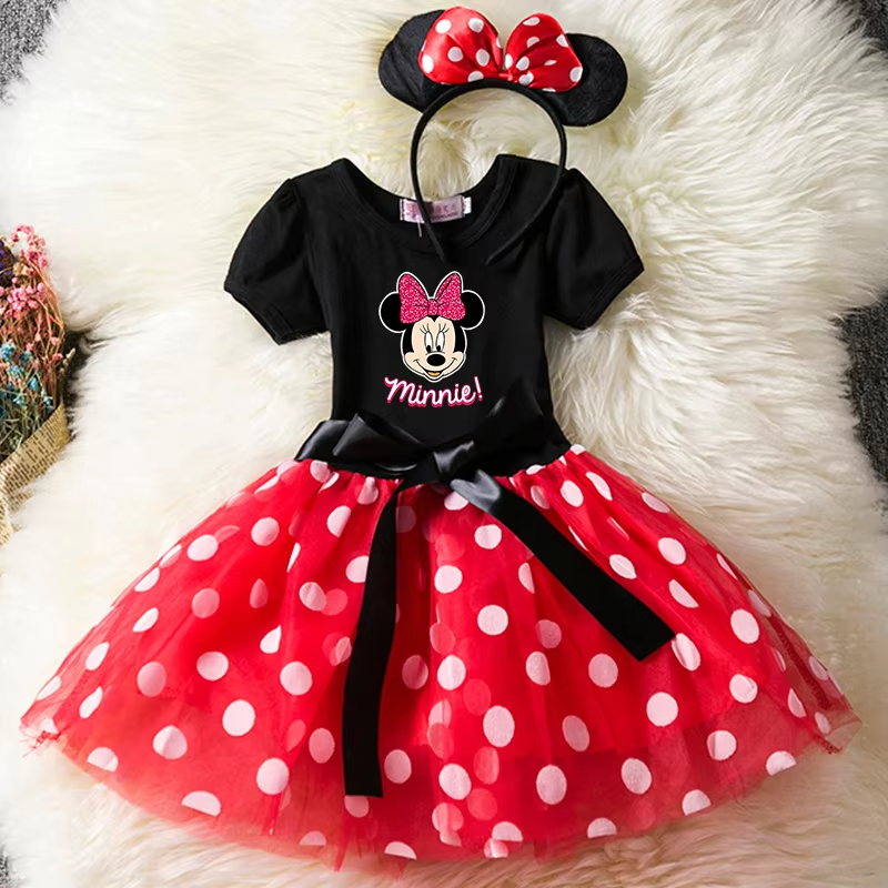 Mickey Minnie Mouse Baby Girls Cosplay Costume Kids Fancy Polka Dot Dress Princess Dress Children Birthday Party Clothing Gift