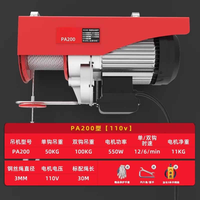 Micro Electric Hoist 110V Small Lifting Winch Crane Lifting Winch Crane