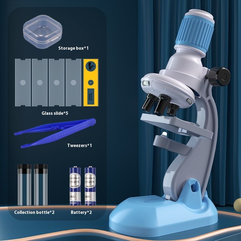 Microscope 1200 Times Professional Scientific Equipment Elementary School Educational Toys Blue Foundation