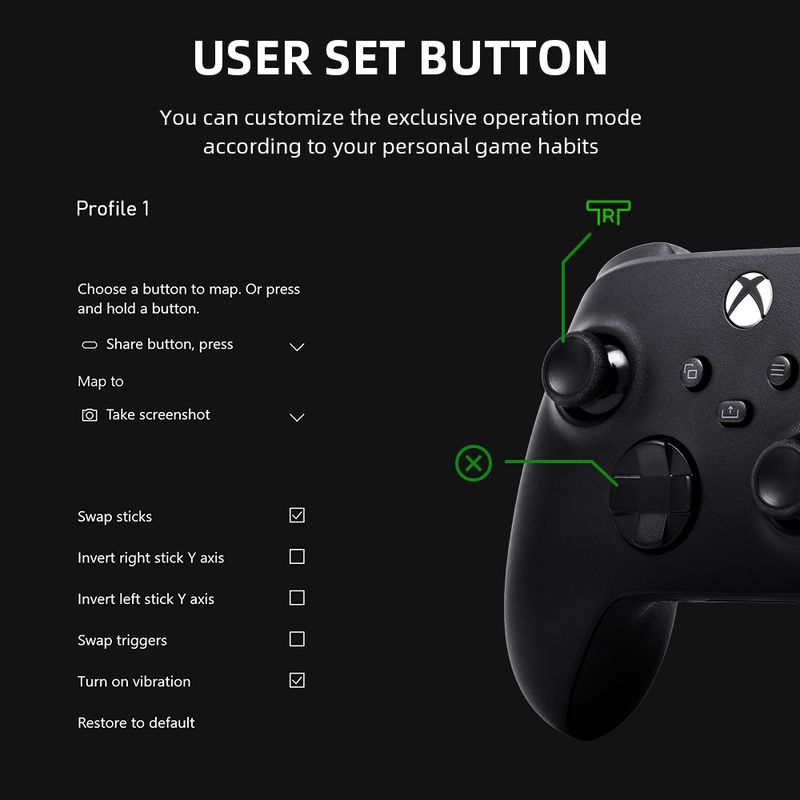 • Use Xbox Wireless or Bluetooth to play across Xbox Series X|S, Xbox One, and Windows 10/11 devices.