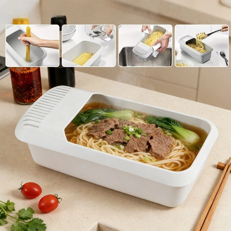 Microwave Noodles Pasta Cooker With Strainer Eco-Friendly Plastic Spaghetti Vegetable Steamer Dishwasher Kitchen Accessories New