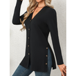 Mid-length Knitted Outer Solid Color Casual Single Row Multi-buckle Long Sleeve Black S