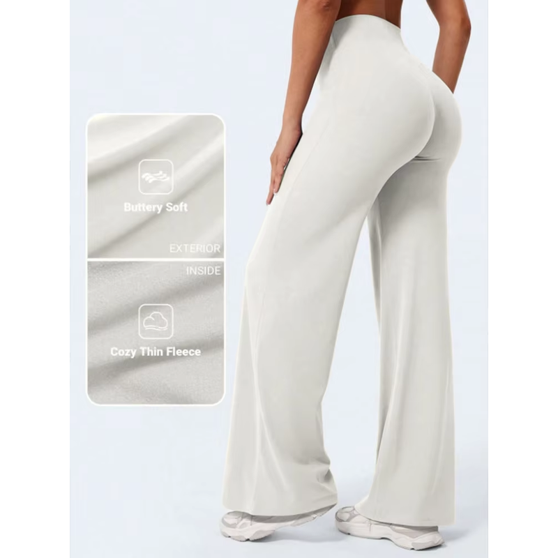 Mid Waist Yoga Straight Leg Pants Soft Wide LegTrousers Naked Feel Fitness Compression Leggings Pilates Running Sports Trousers
