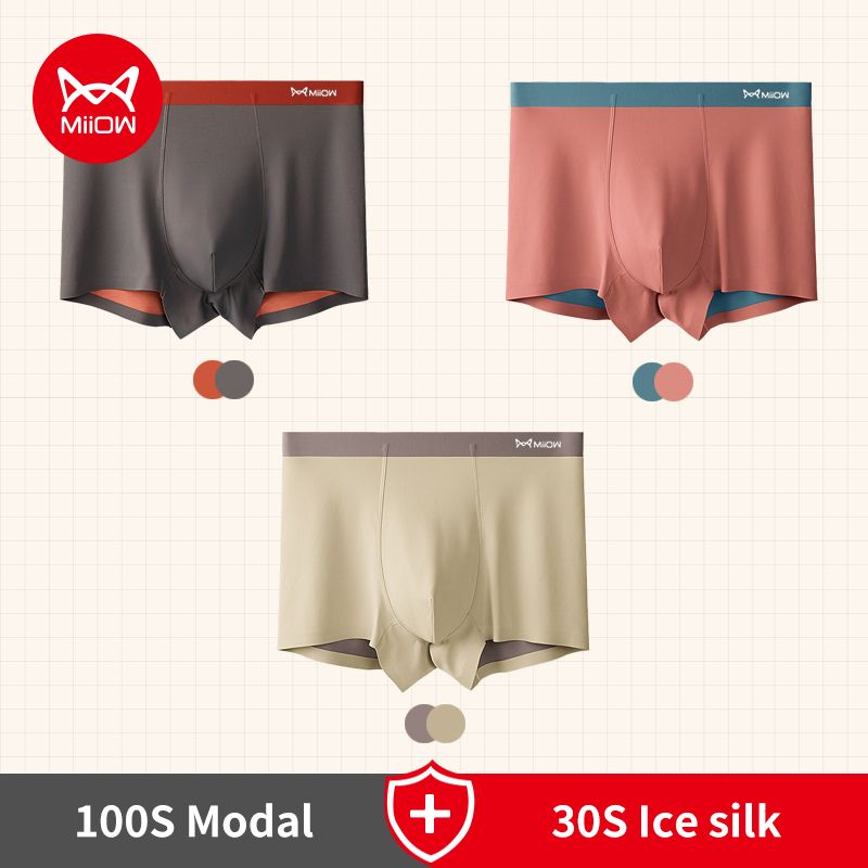 MiiOW 3pcs 100S Modal Men Boxers Underwear Ice Silk Light Men's Panties Boxershorts 5A Antibacterial Breathable Man Underpants