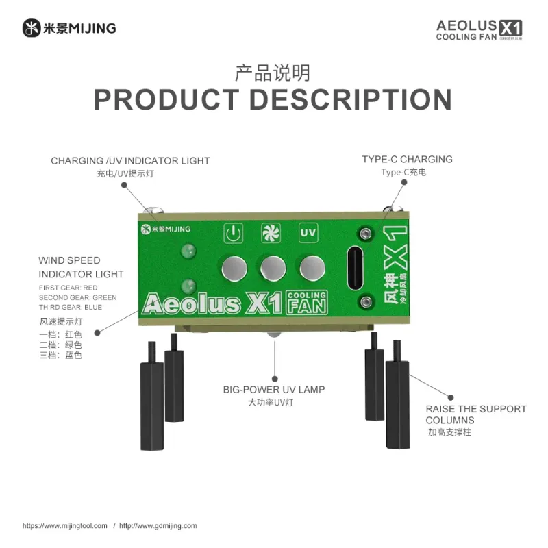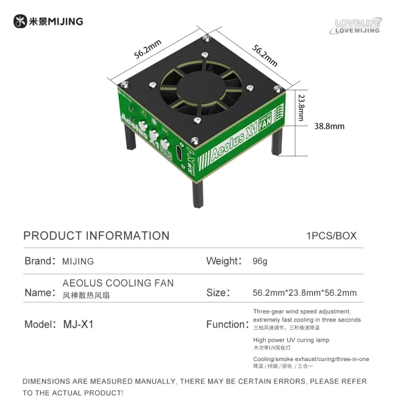 Mijing MJ-X1 AEOLUS Cooling Fan UV Curing Fan For Mobile Phones PCB Welding Repair Fast Heat Dissipation Smoke Exhaust tools kit