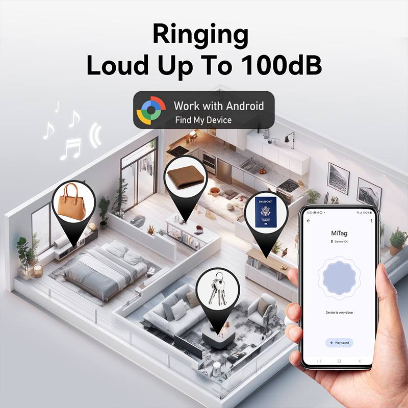 5.Operation instructions: Connect and use, no need to download APP, you can connect through for Integrate with Google Find My. Features: Global positioning, one-click search, ultra-long standby, lost tracking, voice reminder, light and portable, dustproof