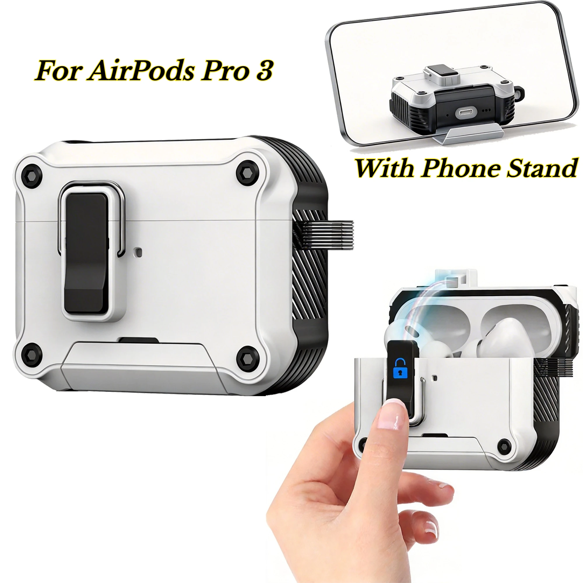 Military Grade Shockproof Earphone Case For Apple AirPods Pro 4 Pro 3 Pro 1/2 Magnetic Automatic Flip Secure Lock Design Cover
