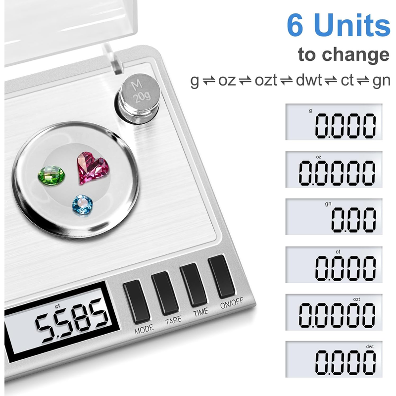 【High Precision Scale】Weighs up to 50 grams in 0.001 gram increments. The scale is based on a high precision sensor system that provides instant and accurate readings. Multiple units effectively measure in g / oz / ozt / dwt / ct / gn.