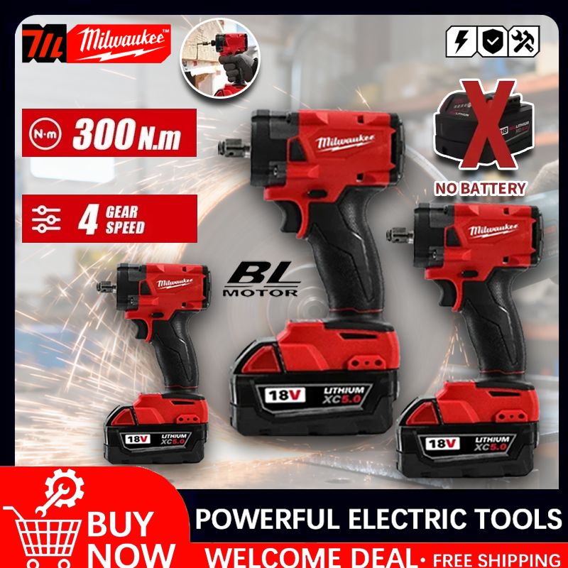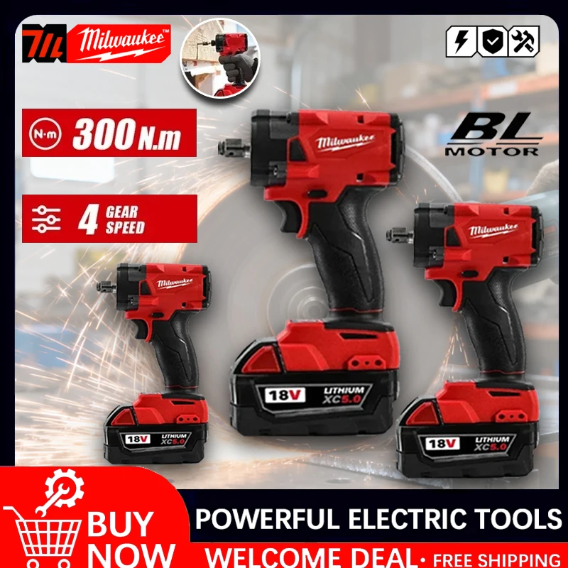 Milwaukee Brushless Cordless 1/2 Electric Wrench Car Truck Repair Screwdriver Impact Drill Rechargable 18V Battery Tools